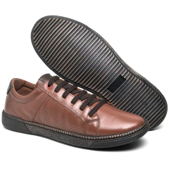 Este Sapatenis é todo confeccionado em couro de origem bovina com acabamento Natural em todos os detalhes e toda e estrutura. Sua sola é costurada (blaqueada) em toda a estrutura inferior do tênis, é pensada e desenhada para obter o melhor calce e conforto. A amarração deste tênis é toda pensada na praticidade do dia-a-dia trazendo assim a tecnologia de um tipo de elástico que ajuda ao calçar e conforto no momento de caminhar. Seja único, compre de quem entende o que você precisa, compre calçado de qualidade, tenha aos seus pés um produto super-moderno, atual e extremamente confortável, para o homem que procura novidade.