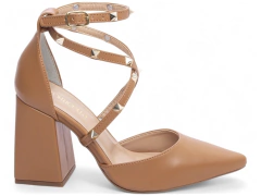 - Enfeite: Detalhes de apliques pirâmides em ABS dourado e uma fivela de ajuste na mesma cor, trazendo um charme especial ao modelo.